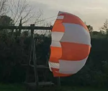 Test du parachute d'une petite hauteur (1 étage). Le résultat n'est pas concluant car la hauteur n'est pas assez grande (on observe tout de même un début de déploiement).